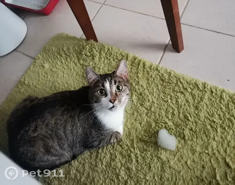 Молодая и активная девочка, но незнакомцев побаивается По окрасу обычная дворовая, тёмная спина с полосками и белая грудка и живот, белые лапки как носки, мордочка тоже сера чёрная с белой полосой от лба до носа Пыталась охотится на птиц и не рассчитала свои возможности, выпала с балкона 4го этажа, надеюсь ничего не повредила, очень надеюсь что просто испугалась и прячется где-то +79538129996 номер телефона 2го владельца