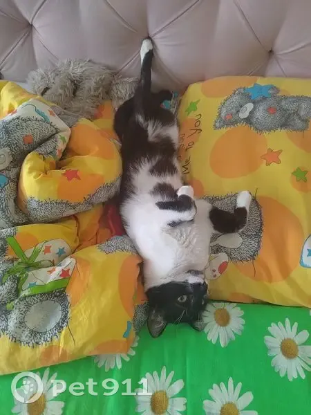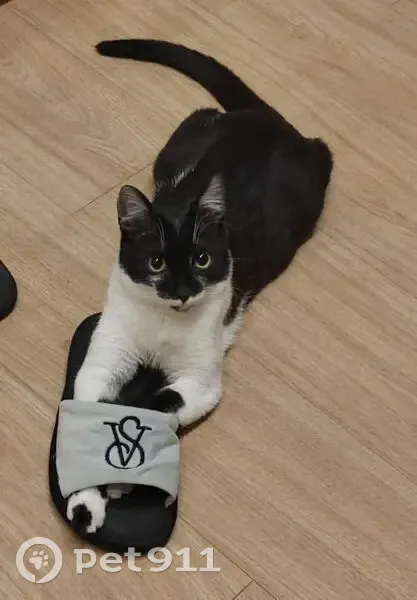 Пропал молодой кот, зовут Бася, Басик, Басюша, 10 мес, без ошейника. Окрас чёрный с белым: чёрная морда, шея и грудь белые, передние лапы белые с черным, задние - чёрные. Кастрирован. Убежал из квартиры вечером 12.04.2025