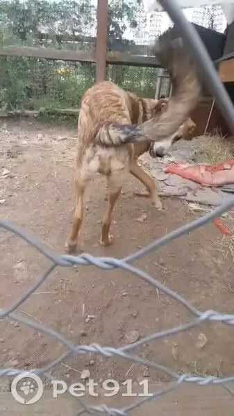 Большой пёс, худой, высокий. Не породистый, дворняжка. Очень добрый, сам к людям подходит, любопытный, немного непослушный. Сам рыжей раскраски, хвост чёрненький, а грутка белая. Сбежал ночью с 23 на 24 декабря, он жил в вольере в частном доме, и сбежал испугавшись грохота, пролез под забором. Когда чегота боится бежит слома голову, и легко теряется.