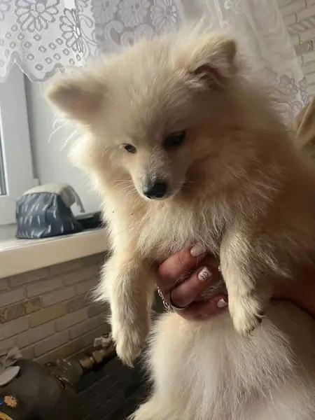 Шпиц, мальчик, кличка Марсель. Возраст 2 года. На шее ошейник с адресом и номером.