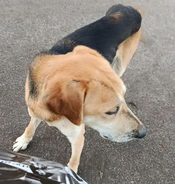 Сука , зовут Ями, стерилизована, есть шрам на брюхе