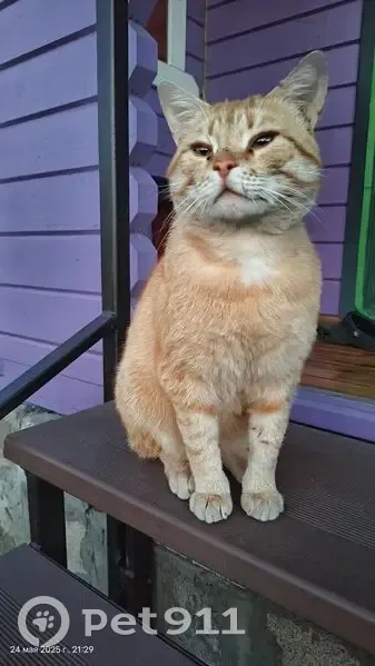 Кот упитанный,большой,очень ласковый и ходит за всеми кого увидел,очень просится в дом,явно домашний в прошлом кот,в деревню пришел где то неделю назад