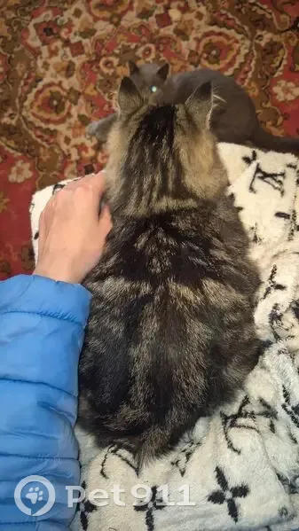 Найден котик, вроде мальчишка. Молоденький. Сидел на остановке и громко мяукал. Рядом с ним был наложен корм. То ли выбросили, то ли просто покормили. Ручной, похоже домашний, других котов боится. Взяла пока к себе, но ищем прежнего хозяина