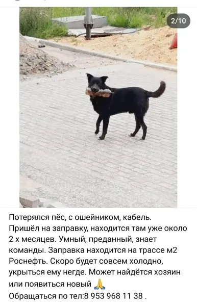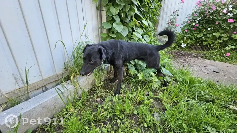 Найден в поле в районе Верхней Иншинки домашний чёрный кобель в двух ошейниках- зелёный ошейник от клещей и обычный коричневый. Совершенно контактный, знает машину. Пока придержали.