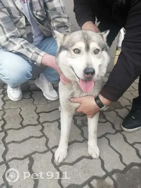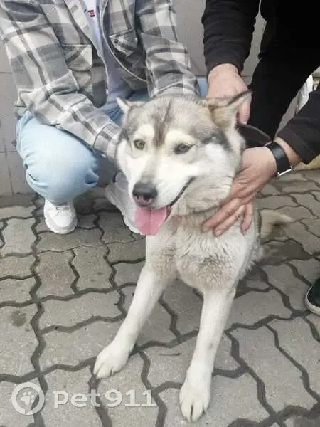 Хаски,девочка, окрас серый. Возраст - около года. Дружелюбная, к людям идёт легко. На ней было 2 ошейника. Прибилась к заводу, сторож подкармливал. Пробыла там дня 3-4.