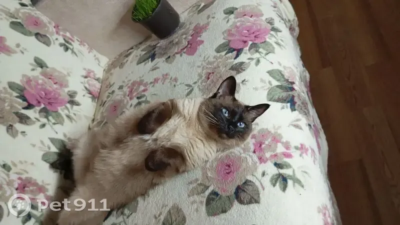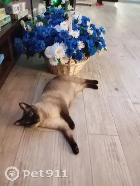 Порода Меконский бобтейл, похожа на сиамскую только маленький хвостик крючком. Очень ласковая. Вышла за территорию дома ночью.