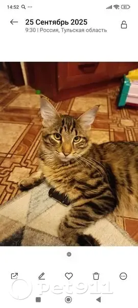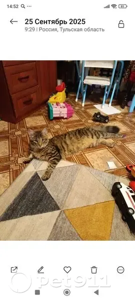 Серый в полоску Мейн-кун помесь. Это кот взрослый 1 год Примерно 3 недели после кастрации. Следы зеленки еще присутствуют по хвостом. Очень ласковый. Боится громких звуков. Пропал 8.11.2025. В 4:45 была громкая сирена с говорителем мог ее испугаться. Дома боится даже пылесоса. Пропал в районе Мясного привокзальный район, Кооперативная улица дом 22 напротив ЦО 4 Член семьи. Дети его ооочень ждут. Спасибо.