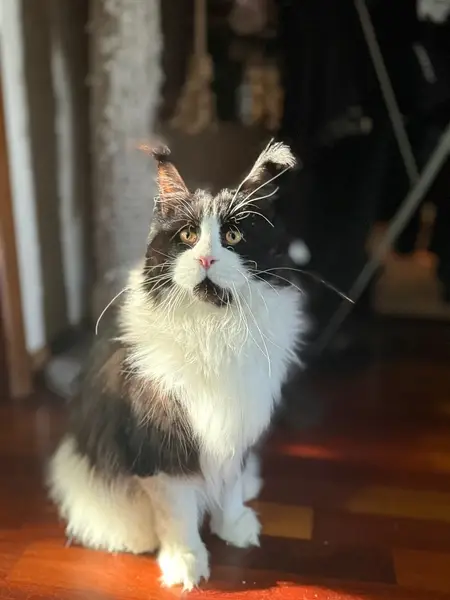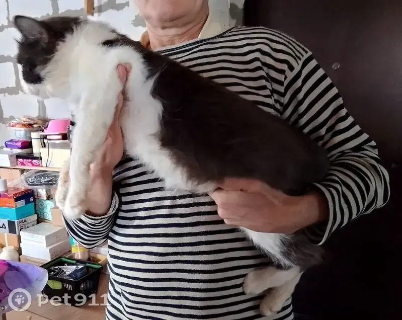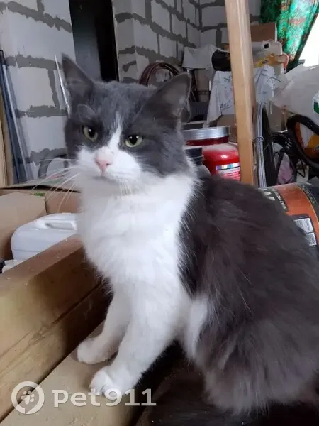 Кот крупный, белый с темно-серым, на мордочке полоска белая. Появился в районе по времени продолжительности не известно, но последних 2 месяца его видели точно. Был выловлен, находится на передержке. Ищем хозяев!