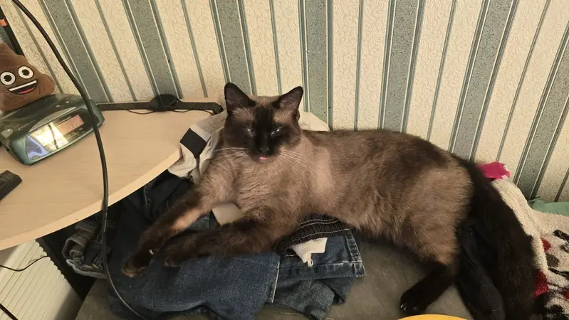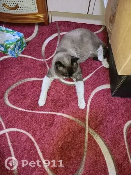 23 февраля найден сиамец(прибился, голодный, тощенький), с синим ошейником, окрас моска черно-коричневая, лапы и пузико бежевые, глаза голубые, московский район. Пока приютили, ищу хозяина! 89520619432