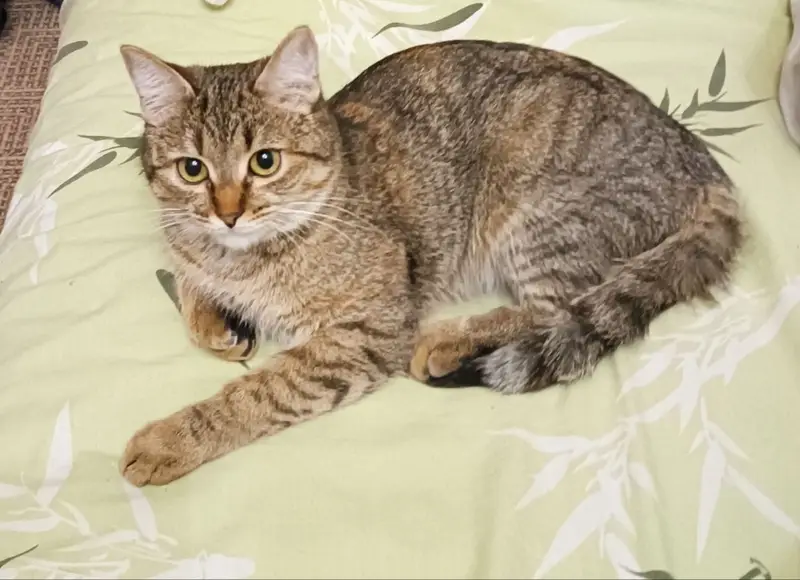 сняли с дерева возле ларьков, автомата с водой и остановки химинститут. Она с ошейником, очень ласковая, ведет себя на улице не уверенно, видимо домашняя. Проследовала с нами до самого дома.