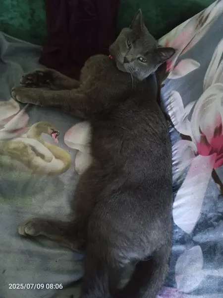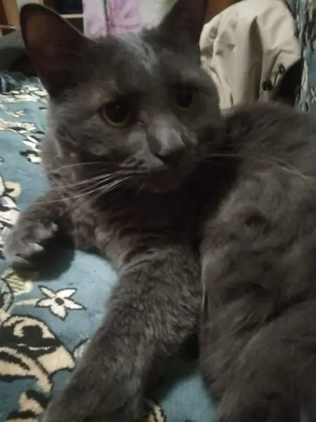 Днем 27.05.24 за сыном пришёл кот, терся об ноги, кот голубого окраса, глаза желто-зеленые, правое ухо надорвано(рана старая) очень жмётся к рукам, ласковый. Постригли когти(видно, что процедура знакома) поел сухой корм. Кастрирован. У себя оставить не можем, есть свой кот, и кошки, +доберман(который точно не в восторге от гостя). Ищем прежних хозяев потеряшки, или новых.