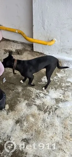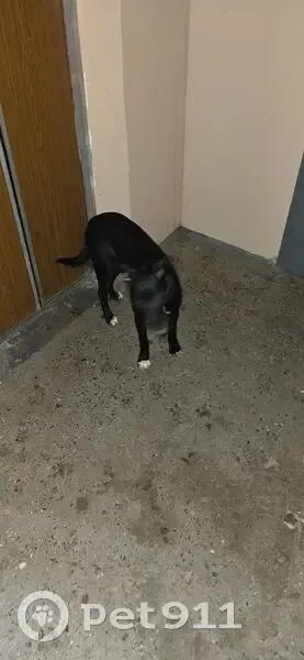 Черный щенок с отгрызанным кожаным ошейником. На второй день уже без ошейника. Добродушный, холеный.