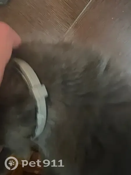 Молодая кошка, серого цвета, ошейник серый. Н...