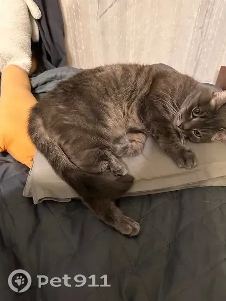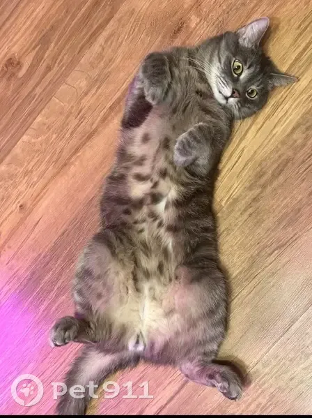 Потерялся серый, полосатый кот по адресу Тамары Ильиной 35. Был в фиолетовом полупрозрачном ошейнике. Кастрирован, привит Пугливый, скорее всего может от страха или убежать, или шипеть