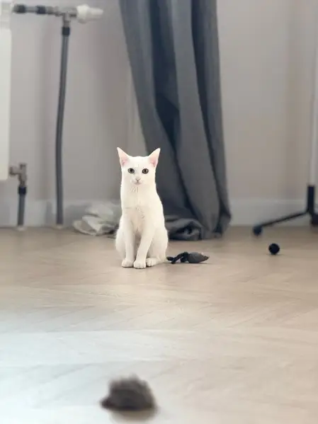 Кошка белая, на лбу маленькое серое пятнышко, на ней ошейник (именной с номером телефона, кожаный ,коричневый, как на фото). Молодая, около года. Пропала в районе Старицкого шоссе.