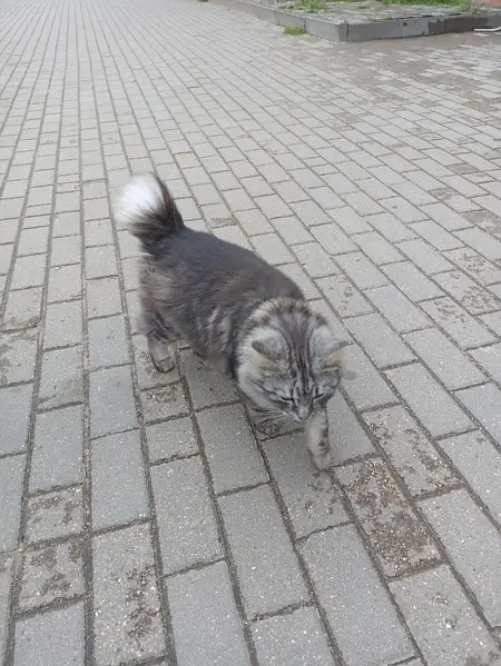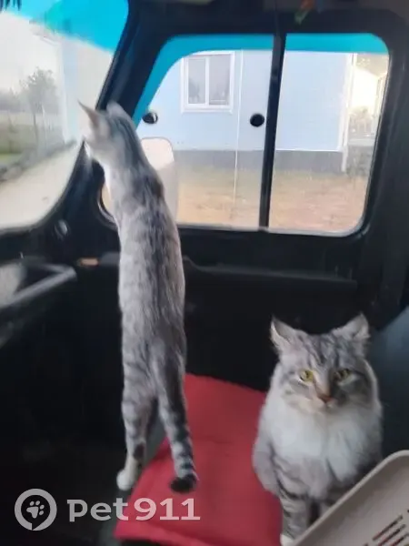 У Пушистика окрас серый, тигровый, шерсть длинная, на шее грива как у Льва. У Бельченка окрас серй, тигровый, шерсть короткая, худенький. Выскочили из переноски у подъезда дома, на улице в городе первый раз