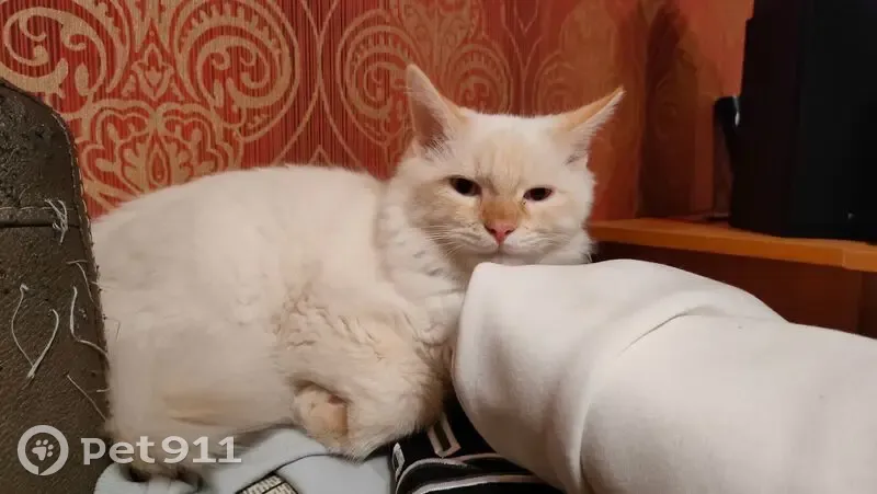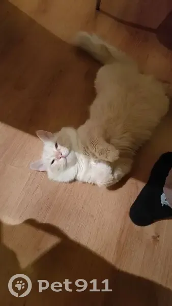 Молодой кот с объемной торчащей шерстью белого цвета, рыжеватая мордочка. Пропал скорее всего утром 6 января, возможно по неосторожности вышел с кем-то из гостей и не заметили.