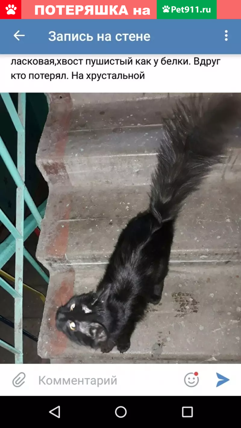 Днём 31.12.18 убежала собака, кобель. убежал из района кинотеатра "Россия" Кличка — Амурок. Окрас — черный с белой грудкой. Возраст — 9 месяцев, помесь немецкой овчарки и лайки. Высота в холке — 75 см. Новый кожаный коричневый ошейник. Последний раз его видели прохожие на проспекте Ленина. Информацию писать в лс. Любая информация может быть полезна. https://vk.com/id20-683-19-37 - Оксана Помогите ,пожалуйста, найти кошечку !!! Пропала в Затверечье, но похожую видели на Соминке, 10 мес. Очень длинный, пушистый хвост, желтоглазая, слабенький голос. В день пропажи была в желтом ошейнике. Ребенок скучает. Кто что-нибудь знает-сообщите. https://vk.com/id19486289 тел: