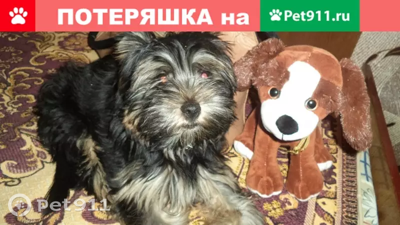 Спокойная, но может полаять на прохожих. Окрас чёрный, на мордочке и лапах пепельный окрас,на момент пропажи была не пострижена. Порода йорк, не мелкая, стандартная, по виду больше похожа на балонку. Утром около 8-00 выбежала из подъезда, пока дочка одевалась соседи открыли дверь.