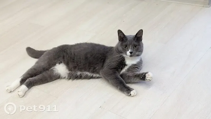 Кот выпал из окна и убежал! Окрас серый, бело...