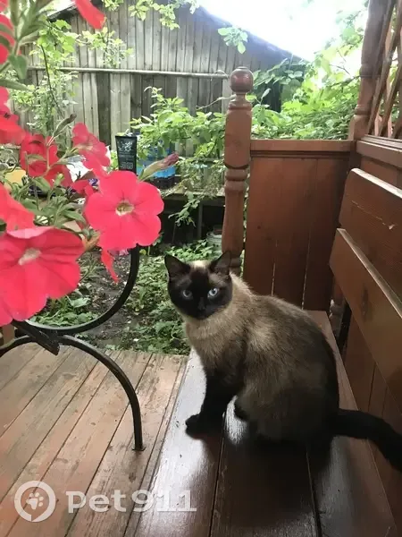 Кошка сначала приходила на крышу дома. Была голодная. Я ее покормила и она теперь приходит. Видно, что домашняя. Возможно привезли из города на дачу и она там потерялась. Порода тайская