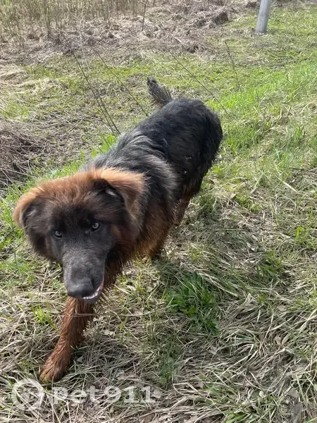 Немецкая овчарка кобель, молодой без ошейника и с ним была еще собака, помесь, молодой/ая. Очень добрые , ласковые и игривые. Людей и машин не боятся. Видно что ищут человека, подбегают к останавливающимся авто, но в машину не запрыгнули. С надеждой, что хозяева найдутся.