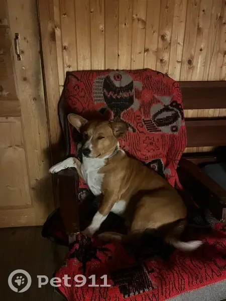 Порода басенджи, Дастину 5,5 лет, он никогда ранее не убегал более чем на полчаса-час, в этот раз нет уже больше суток, убежал 26 сентября в 18:40, к незнакомым сам обычно не подходит, к другим собакам может быть агрессивен, на левом ушке неровный край, так как его кусали, должен быть зеленый ошейник, если он не снялся