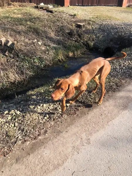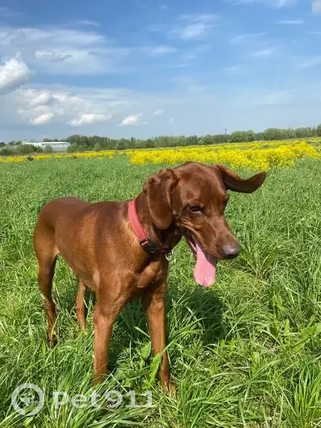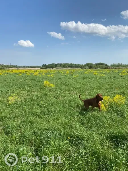 Рыжий, в холке 70 см, Кабель, не кастрированный, на вид года 2 примерно. Какая-то охотничья порода видимо. Тянет поводок во все стороны. На ошейнике номера нет. Чип в ветклинике не нашли. Бегал один в поле за колпинским шоссе (Славянка), в полях рядом церковь Спинидоновская (деревянная). В полях хозяев не было, отбегал и опять возвращался к моей собаке. В течении часа, никто не подошел, в полях других собачников не было. На самовыгкльного не похож, обычно они поиграют и убегают, этот отбегал, но возвращался. Не агрессивный, в меру пугливый.