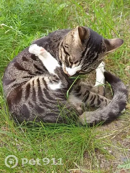 Он ласковый легко бесстрашно подходит к людям а краз у него похожий на дымковского леопарда большое тёмно-коричневое пятнышко в виде линии расположено по спинке до хвоста, и по телу расположены пятнышки, он осторожно кушает еду даже из рук, у него жёлтые глазки, а ещё на носу на каждой лапке и на грудке у него белая шерсть, основной цвет его шерсти желтовато-серовато-светло-коричневый. Ждёт своего хозяина. По виду ещё малыш .