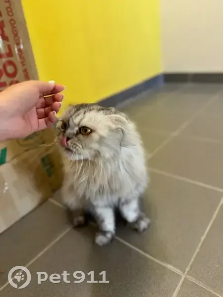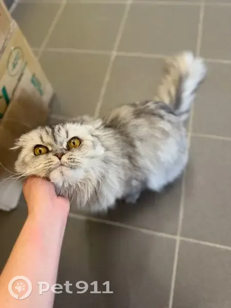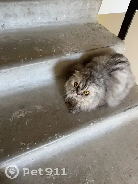Шотландская вислоухая длинношерстная кошка (хайленд-фолд), возможно это и кот, из-за длинной шерсти не удалось рассмотреть, но вроде кошка. Потерялась в районе Рощино, жилой комплекс Краснолесье. Забежала в подьезд, живет на лестничной площадке, кормим всем домом, писали объявления в соседние дома, никто так и не откликнулся. Очень ласковая, дружелюбная, просит внимания, ведь она целыми днями сидит одна, навещают изредка дети и мы, кто кормит.