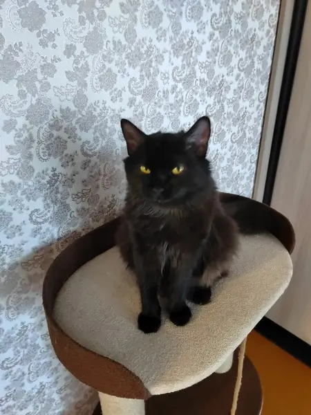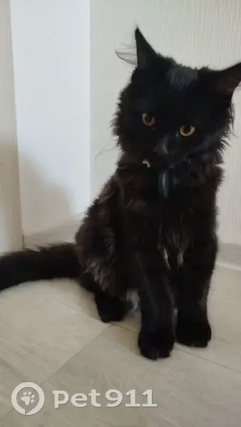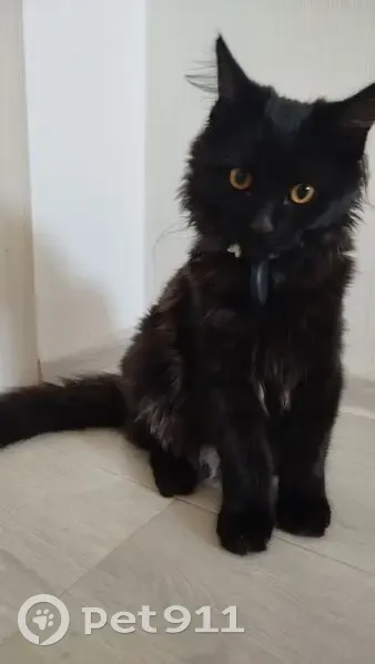очень ласковая кошка, сразу видно, домашняя; любвеобильная черная, глаза желтые, на животе маленькое белое пятнышко, когти подстрижены, на шее был ошейник, соседка его перерезала и заменила на резинку, тк был сильно тугой, говорит давил на шею, на ошейнике чехольчик hoco, скорее всего от GPS, но самого GPS внутри нет :(