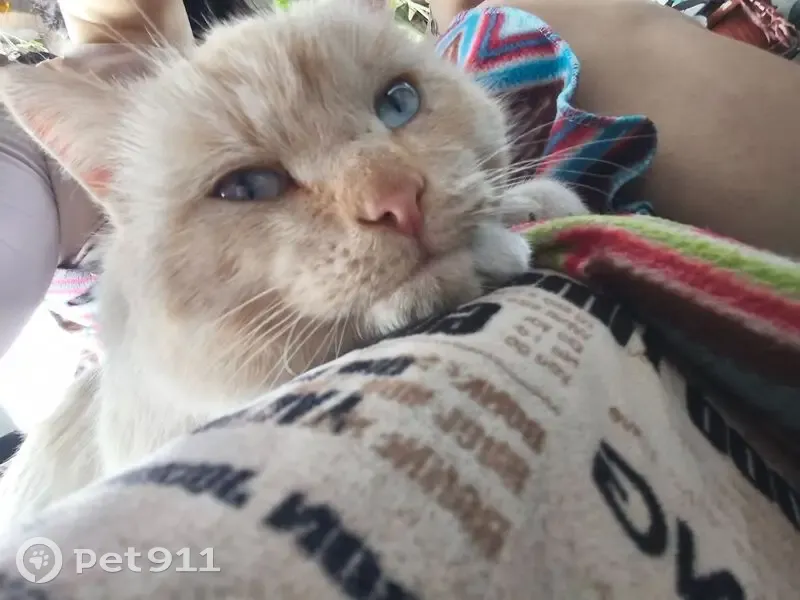Кот, светло бежевый окрас с рыжими полосками местами на хвосте, голове, глаза голубые, не кастрирован, без ошейника, острые зубы и коготки, сам среднего размера. Сходил на лоток, понимает когда его зовут к себе, много ластится, очень много разговаривает, требовательный, высоко прыгает, залазит на стол Несколько дней мяукал с чердака дома. Его самого увидела только 3 января, сильно был голодный. Смогла его достать 4 января. Он был очень грязный, видимо спал в мин. Вате, блохастый. Помыла, покормила.