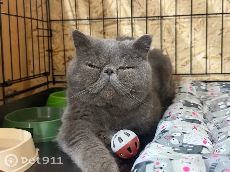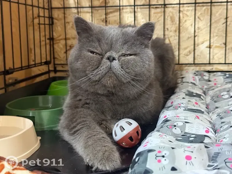 Найден кот, порода предположительно ЭКЗОТИЧЕСКАЯ КОРОТКОШЕРСТНАЯ, кастрирован, окрас серо-голубой, цвет глаз медный, возраст 10 месяцев-1 год, ласковый, дата обнаружения 18 марта 2026 года, район улицы 50 лет ВЛКСМ за Кардиоцентром, на улице был несколько дней, на нем был ошейник, когда забирали ошейник уже был снят. Сейчас находится на передержке ищем прежних хозяев