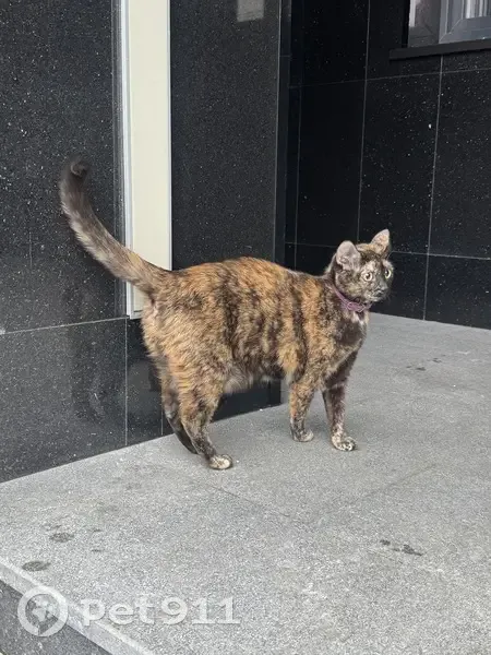 кажется беременная, ласковая и не боится людей, с фиолетовым ошейником
