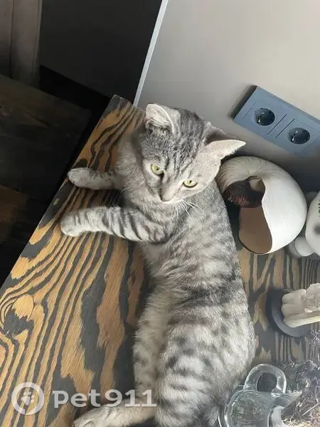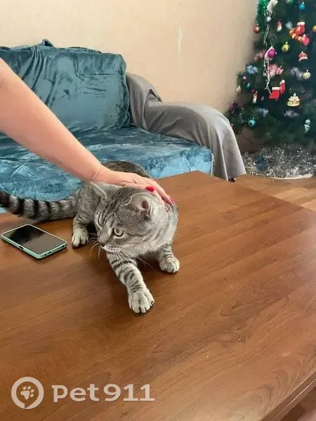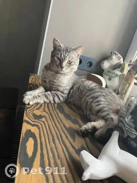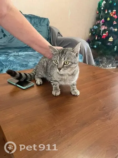 Найден Кот, скорее всего без породистый, окрас серый в черную тигровую полоску, чистый ухоженный, видны следы от ошейника на шерсти, приучен к лотку, очень добрый не конфликтный с другими животными. Найдет в г. Тюмень ул. Военная 21 сидел у подъезда дома.