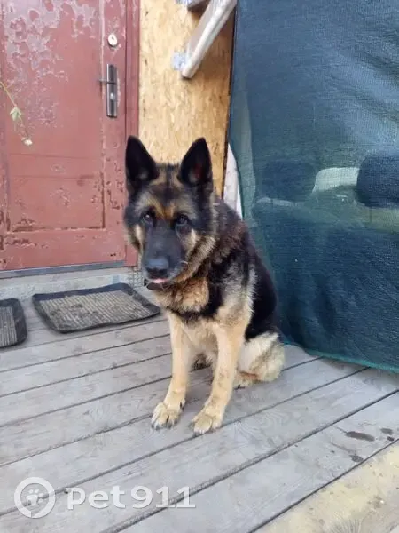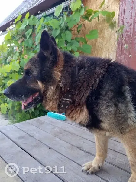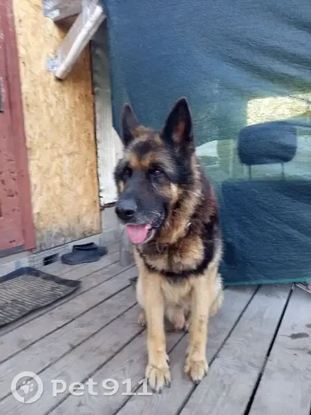 Овчарка. С хорошим ошейником. Не молодой. Не агрессивный. Пришел к нам на участок в 04:00 утра. Имеется травма, так как ходит боком, прихрамывает, но встаёт на обе лапы.