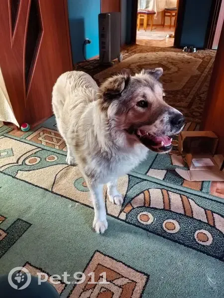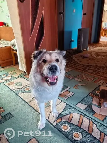 Девочка, сливочного окраса. Пушистая, длинношерстная. Кремового окраса. Уши ковертиком, морда коричневая, ближе к мочке носа белая с крапинками коричневого. На собаке был ошейник.