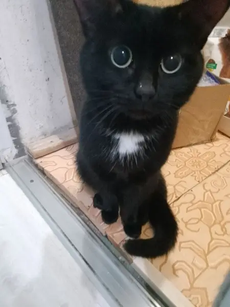 10 августа 2025 года в ТСН Плодовое на улице Таёжная (г. Тюмень) пропал кот, черный с белым "галстуком", домашний, зовут Тимоша. Ему 3 года, кастрированный, очень пугливый, ласковый.
