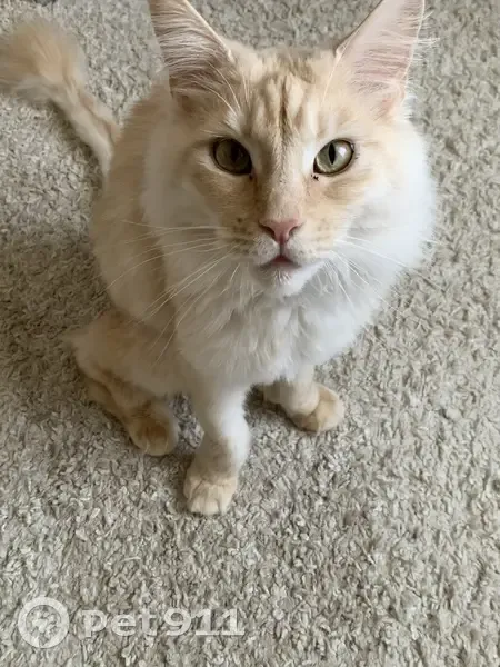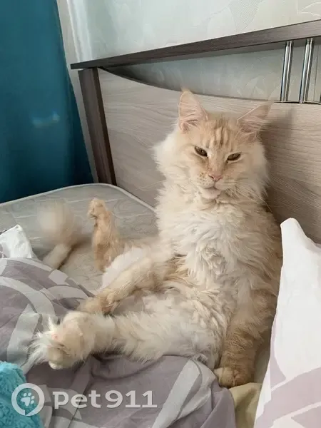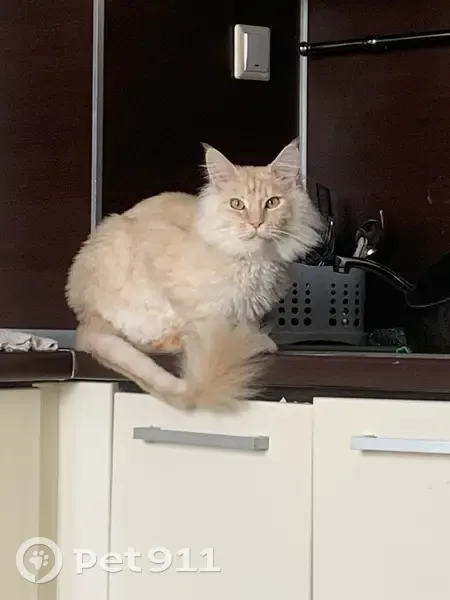 Бежевая шерстка,большая,мейн-кун,пушистый кончик хвостика,обвисший животик,янтарные глазки,очень пугливая. Пропала 15 мая в 23:00 выпала с балкона и убежала