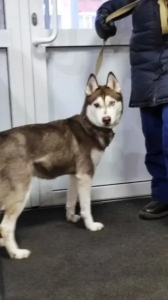 Собака породы Хаски, сука. Откликается на кличку «Лагерта». Оба глаза голубого цвета.Окрас «шоколадный» коричневый. Убежала с автодрома ВОА который находится на выезде из Тюмени по староялуторовскому тракту.