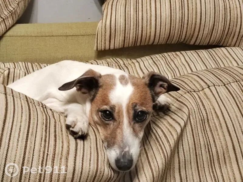 Джесси - порода Джек рассел, коричневые пятна только на голове, на теле нет больших коричневых пятнышек, только парочку маленьких, отзывается на кличку. Убежала с дачи с/о Липовый остров, могла убежать далеко, даже в город