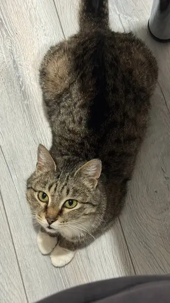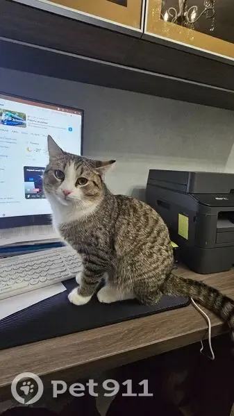 Молодой котик ушёл 17.03.2026 г. И не вернулся. Возраст один год. Окрас тигровый, серо-коричневый,грудка белая,на лапках белые "носочки".