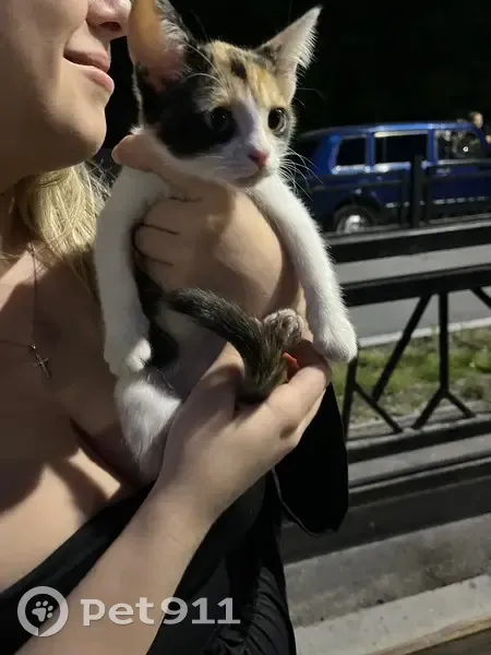 Подкинули на набережную, сказали нашли в зеленке, забрали домой, дома кошка негативно к котенку, оставим не может, возможно потеряшка так как сходила в лоток. Девочка трехцветка красотка.