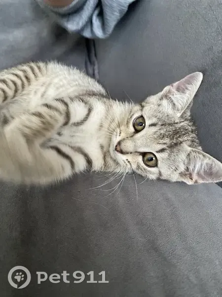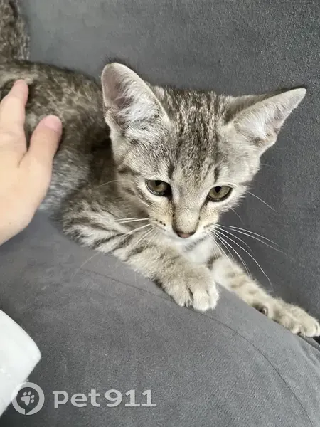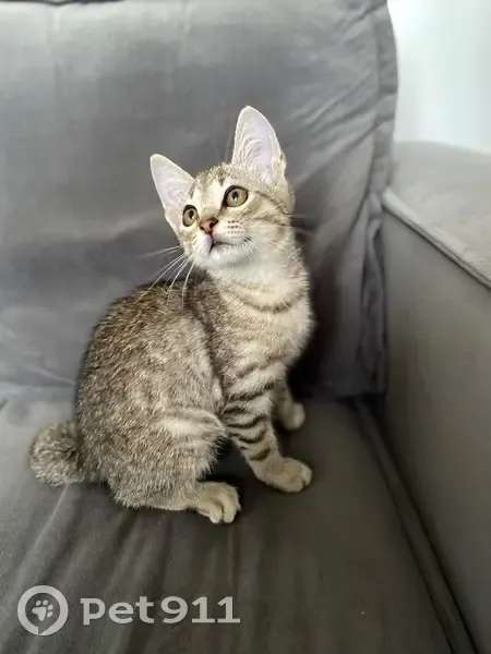 Котенок был найден детьми на игровой площадке,несколько дней до этого скитался по дворам . Особенно по адресу Бульвар яркий 8. Мальчик,мраморно-дымчатый окрас,глаза каре-серые,подведены черным. Подушечки на лапках черные. Возраст около трех месяцев. Откликается на "кс-кс",отлично ориентируется в квартире и не боится других кошек. Очень игривый,ласковый и послушный.