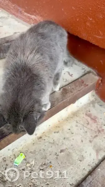 Дымчатого цвета кошка или котик, возраст примерно 1 годик, пушистенький, очень гладкий, потерялся или выбежал из подъезда или соседнего дома, срочно ищем хозяина