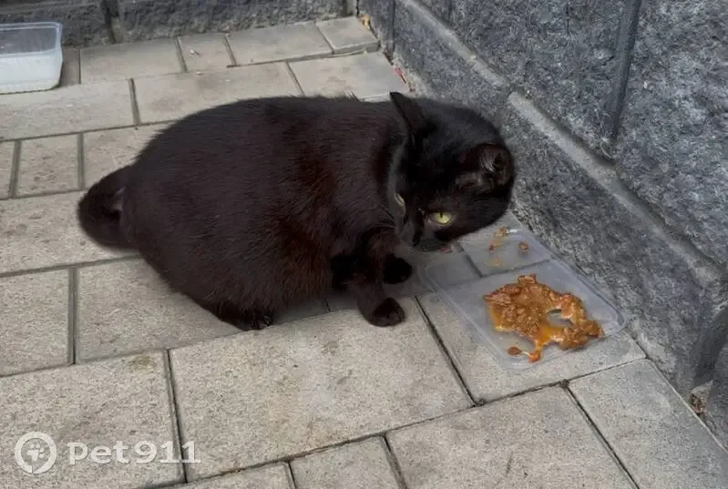 Беременная кошка. Темная гладкошерстная. Внешне здорова. Хороший аппетит. Есть белое пятнышко на груди. Живет возле Красное и белое (в доме со стороны шлагбаума), очень культурная - в магазин не заходит, к людям подходит в надежде что её покормят или заберут домой. Вероятно скоро родит, жаль и кошку и котят на таком холоде.