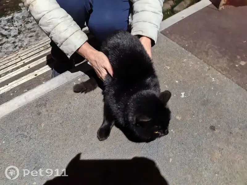 Черная кошка с серым ошейником Микрорайон Тимашево Город Уфа