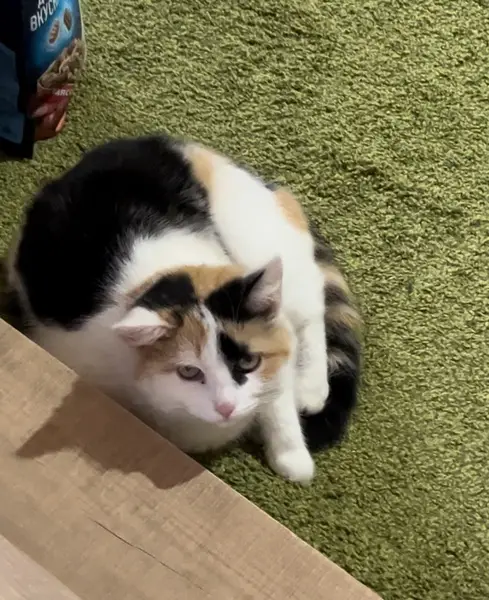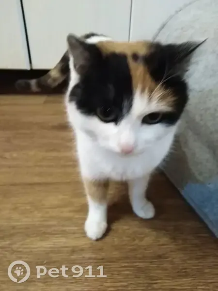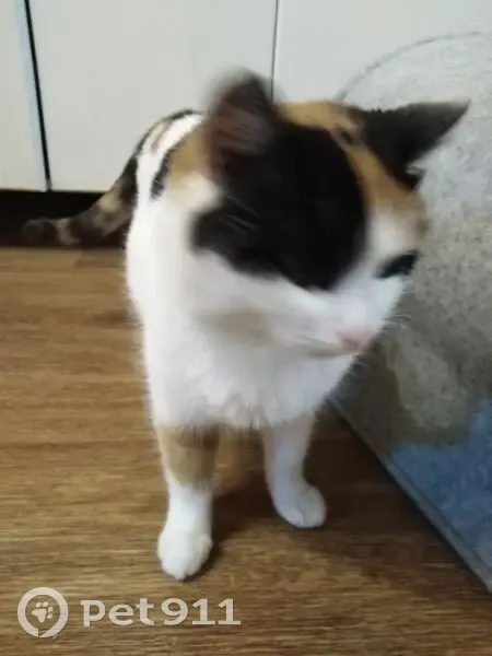 Поздно вечером примерно в половине одиннадцатого парковали машину, подбежала кошка трёхцветная, мелкая, чистенькая, изящная. Очень дрожала от холода. Пыталась залезть погреться под капот машины на тёплый мотор. Открыли капот, забрали кошку внесли в дом, она сразу бросилась к миске с кошачьим кормом (у нас своя кошка есть), весь корм съела. В это время на улице, температура - 19 градусов мороза, поэтому решено было выпустить кошечку утром, чтобы ночью не замёрзла. Утром выпустили, она сделала свои дела и сразу побежала обратно к нам в дом. Пробовали не пускать, но она никуда не уходит, сидит у двери, ждёт, чтобы открыли. Кошечка совсем молоденькая, можно сказать котенок подросток. Абсолютно точно, что она домашняя, хозяева, пожалуйста, откликнетесь!