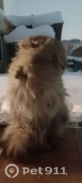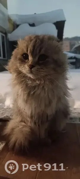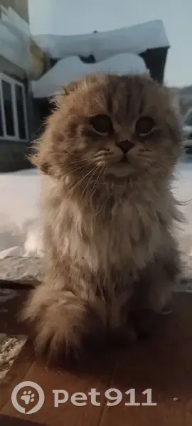 Найден котик (или может кошка) Светло серого окраса, глаза желтые, очень пушистый, похоже что домашний потеряшка. Погладится дает, но в дом не заходит и на улице убегает. Появился первый раз 8 января. 10 января всю ночь на на окне просидел, с моими котами общался