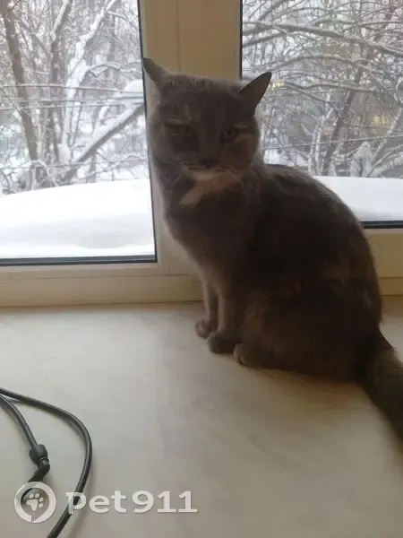Серая кошка, окрас дымчатый. Небольшая, слезиться правый глаз. Очень умная, вчера принесли домой с улицы, потом она сама ушла, сегодня вернулась поела и снова ушла.